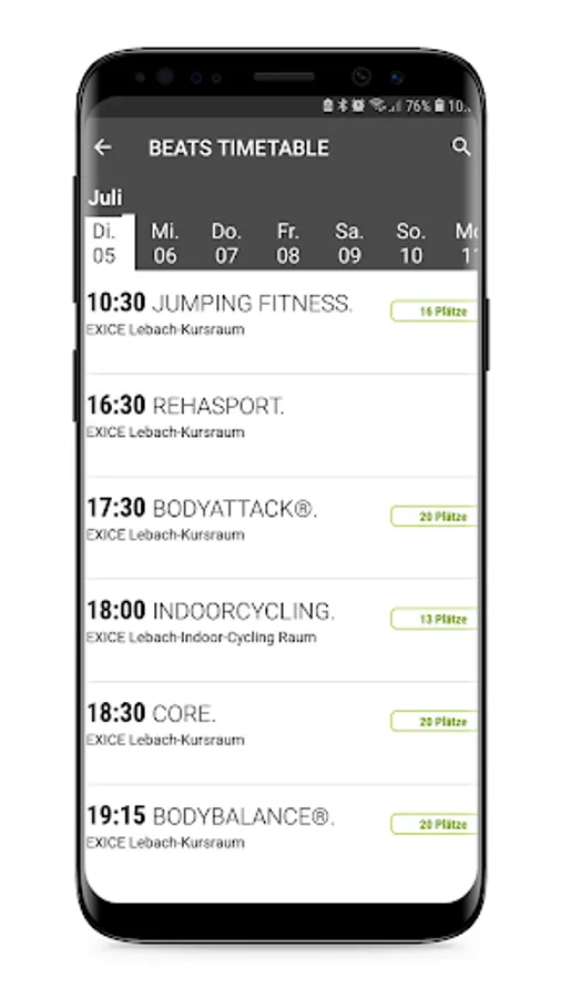 Direct and up-to-date access to the course schedule of your EXICE fitness club from anywhere: You can view details such as time, course description, room and characteristics such as the level of difficulty for each course and book your course directly.