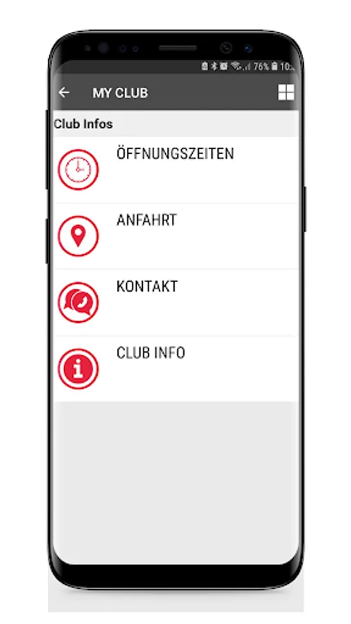Information such as club opening hours, contact, training tips are always included and can be emailed to friends immediately.