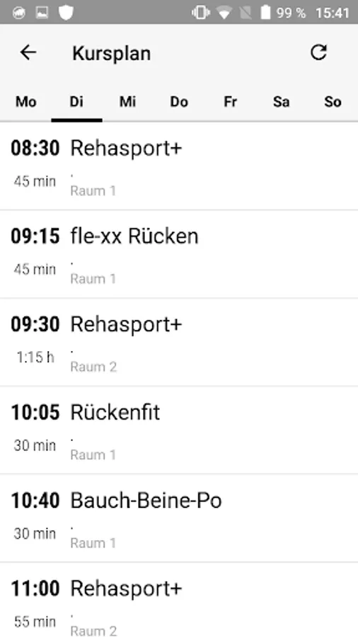 Direct and current access to the course schedule from anywhere: For each course you can details such as time, course description, space and features such as see the difficulty.