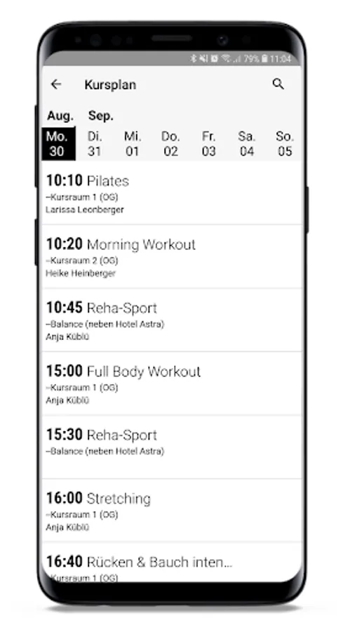 Yoga, step or jumping - you feel like moving, but you don't know which courses are in the program today? You now have the Gymnasion app for that. Always keep current group course plans to hand and join in or plan ahead which courses will best fit your personal schedule. You don't know what's behind the course name? Don't worry, in addition to details such as the time and place of the course, you can also view brief descriptions and then decide on your favorite course.