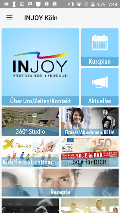 The INJOY Cologne fitness app you have your Gesundheitsstudio always. Information such as the plan of the current and ongoing group training offers are constantly updated and ready!