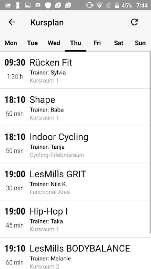 Direct and current access to the group training plan: For each course you can see details like time, place and course description and invite friends to the same.
