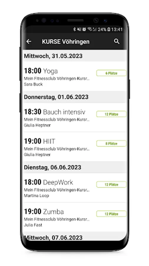The course schedules from all locations always directly and everywhere at hand. Book your favorite course via the app with just a few clicks. In each course view you can quickly and easily find out about important details such as time and course description. And the whole thing even for each individual location.