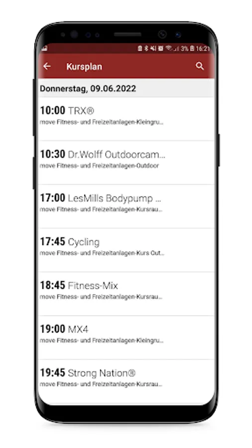 Direct and up-to-date access to the course plan from anywhere: For each course, you can add details such as time, course description, space and characteristics such as: B. see the level of difficulty.
