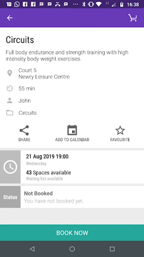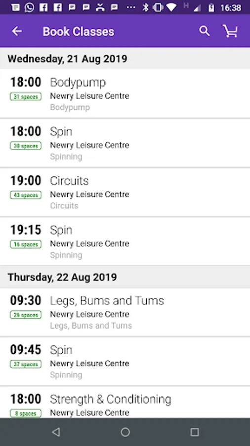 Get real-time access to your centre's class timetable, including times, instructors and descriptions.