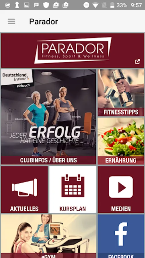 All news from the PARADOR you can read on the go at any time. The most important notifications are posted directly to your smartphone so you know immediately if there are new courses and do not miss any special events more.