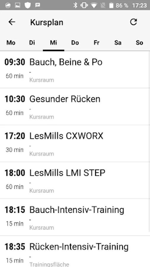 Direct and current access to the course schedule from anywhere: For each course you can details such as time, course description, space and features such as see the difficulty.