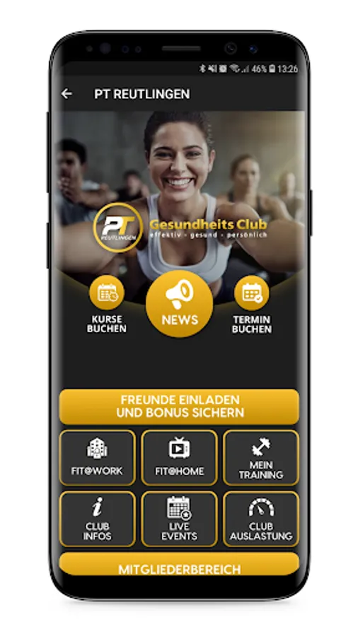 All the news from your PT Reutlingen Premium Health Club is always up to date on your smartphone and the most important ones are sent to your smartphone via notification: You will no longer miss any special events and will always be up to date.