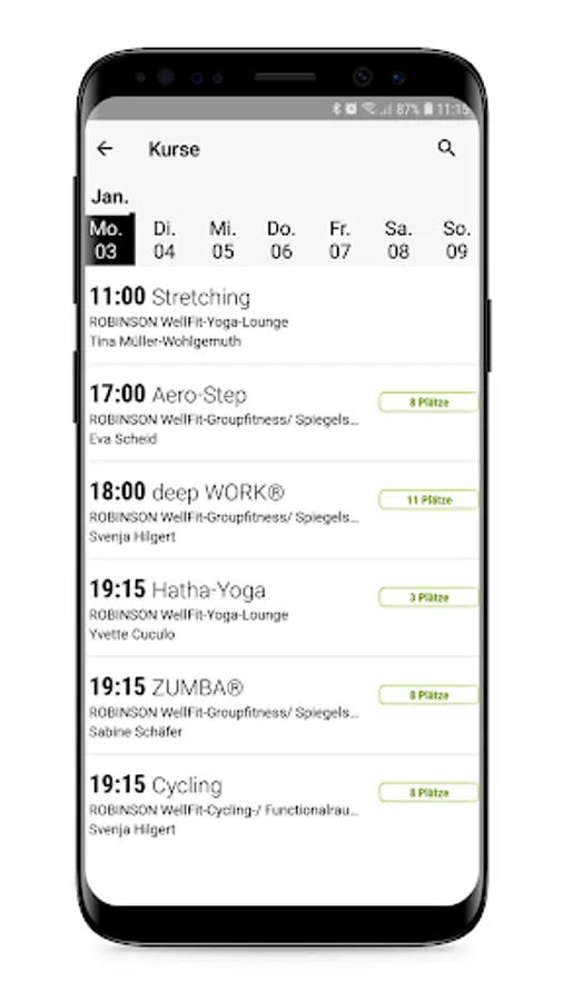 Yoga, Step, or indoor cycling - you feel like moving, but do not know which courses are in the program today? For that, you now have the ROBINSON WellFit app. Keep current group rate plans at your fingertips and you make spontaneously with or plan to best fit what courses to your personal schedule. You do not know what is behind the course name? Do not worry, next to details such as time and place of the course, you can also view short descriptions and then decide for your favorite courses.