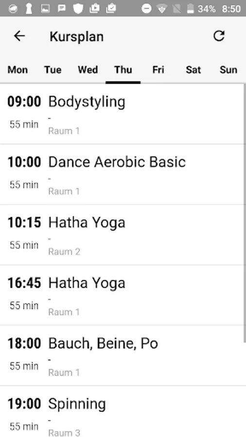 Direct and current access to the group training schedule: For each course you can see details such as time, course description and senior coach.