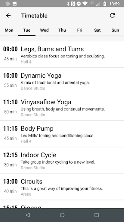 Get real-time access to your centre’s timetable for classes, including times, fitness instructors and class description.