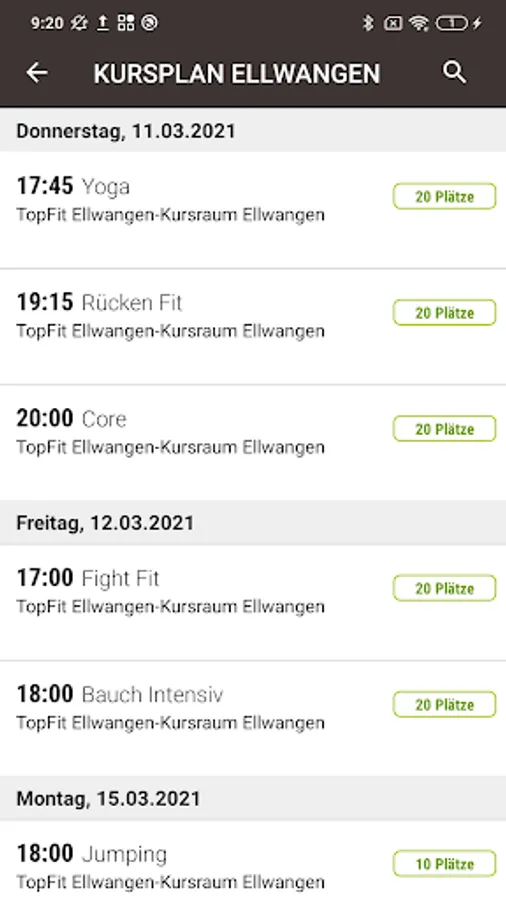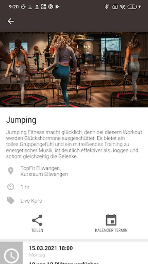 Direct and up-to-date access to the course schedule from anywhere: For each course you can view details such as time and course description, as well as book your favorite course.