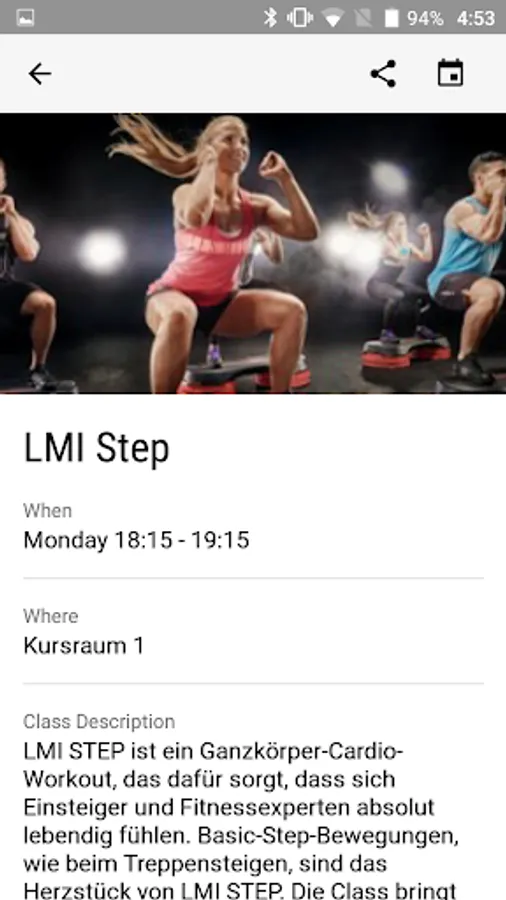 Direct and current access to the course schedule from anywhere: For each course you can details such as time, course description, space and features such as see the difficulty.
