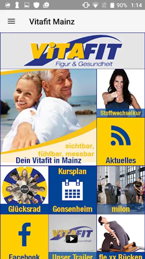 With the VitaFit fitness app you have your gym in Mainz always there. Information such as the plan of the current and ongoing group training offers are constantly updated and ready!