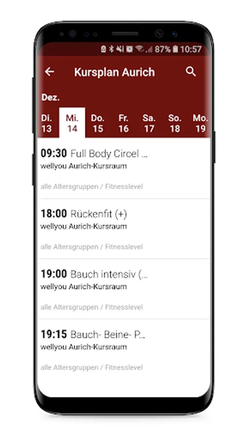 Deep Work, BootyFit or Bodycombat - Do you feel like exercising, but don't know which courses are on the program today? You now have the wellyou app for this. Always keep up-to-date course schedules at hand and join in spontaneously or plan which courses fit best into your personal schedule. Don't know what's behind the course name? Don't worry, in addition to details such as time and place of the course, you can also view short descriptions and then decide on your favorite courses.