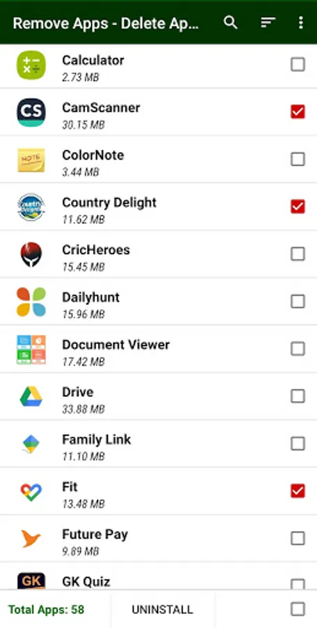 Remove Apps - Delete Apps - Uninstall is a tool to uninstall apps for android devices. It is quite easy to use, you can select multiple apps that you want to uninstall, and click "Uninstall" button to uninstall them.