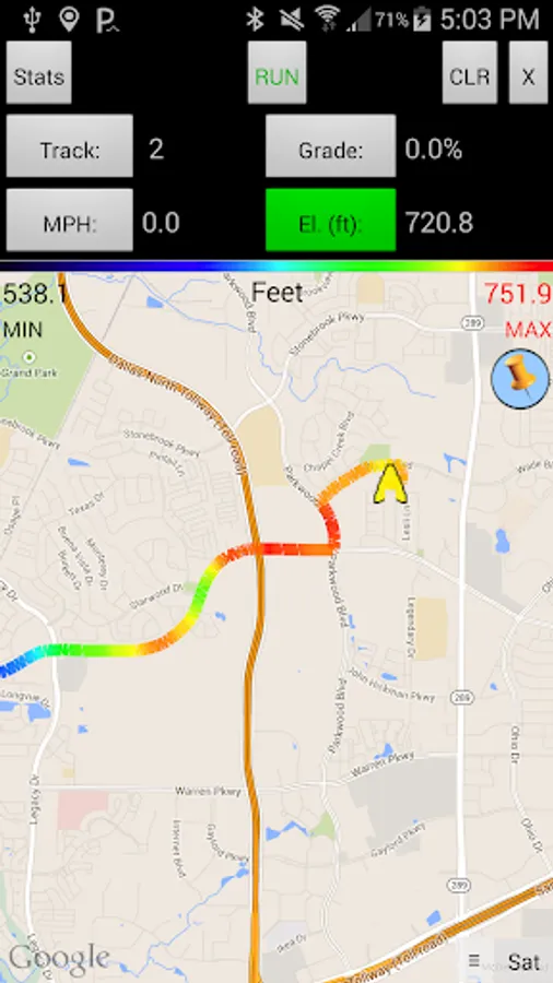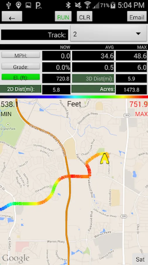This program allows you to view and record GPS points, pipelines, tracks, distances, and areas while in the field. The device’s built in altimeter, when equipped, provides precise elevation data. Tracks can be viewed in Profile and Plan View with recent aerial imagery in the background. The tracks are displayed with color gradation based on the user’s preference of displaying speed, elevation, or grade. The data is easily saved and sent to email with the push of a button on email capable devices.