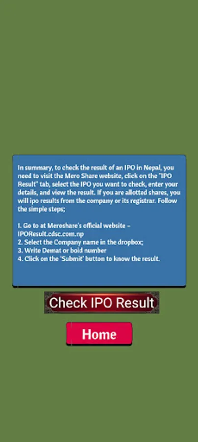 One of the primary features of IPO Result Check Pro is its ability to access the IPO results from the CDSC (Central Depository System and Clearing Limited) in Nepal. The app provides a direct link to the IPO result CDSC website, where investors can access the latest IPO results.