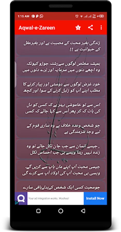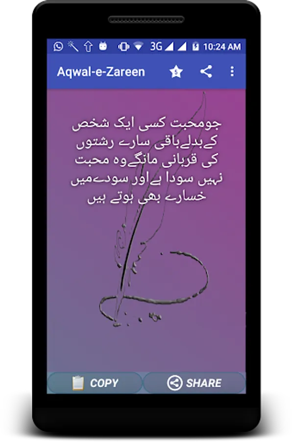 Huge collection of Famous & Best Aqwal-e-Zareen and Sunehri baatain. Achi batain for childrens , students and sharing with family and friends. Hakayat of sheikh saadi. Sayings of Hazarat Muhammad (PBUH) and Hazrat Ali (RA). Famous islamic Sayings, quotes and sms Collection. Urdu Aqwal and qeemti batain. Anmol moti of life . Must share with your love ones.