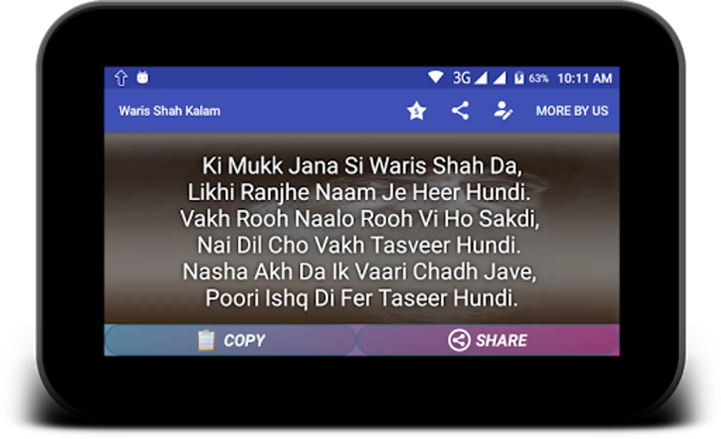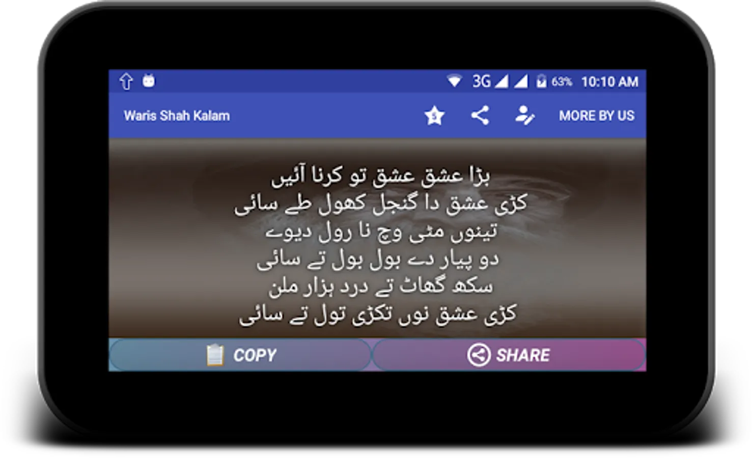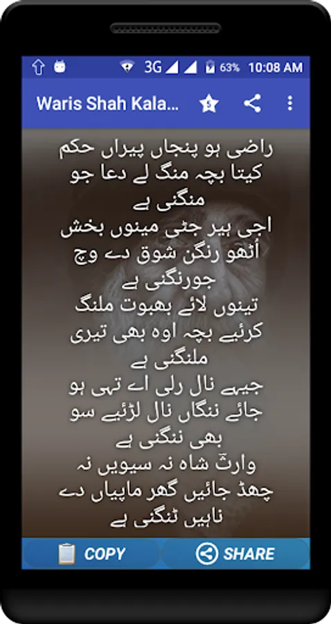 Collection of Sufi kalam by Waris shah. Waris shah Shayri like "Heer" and more like this. You can download your favorite Urdu / Hindi poetry as text or image and share with your loved ones.