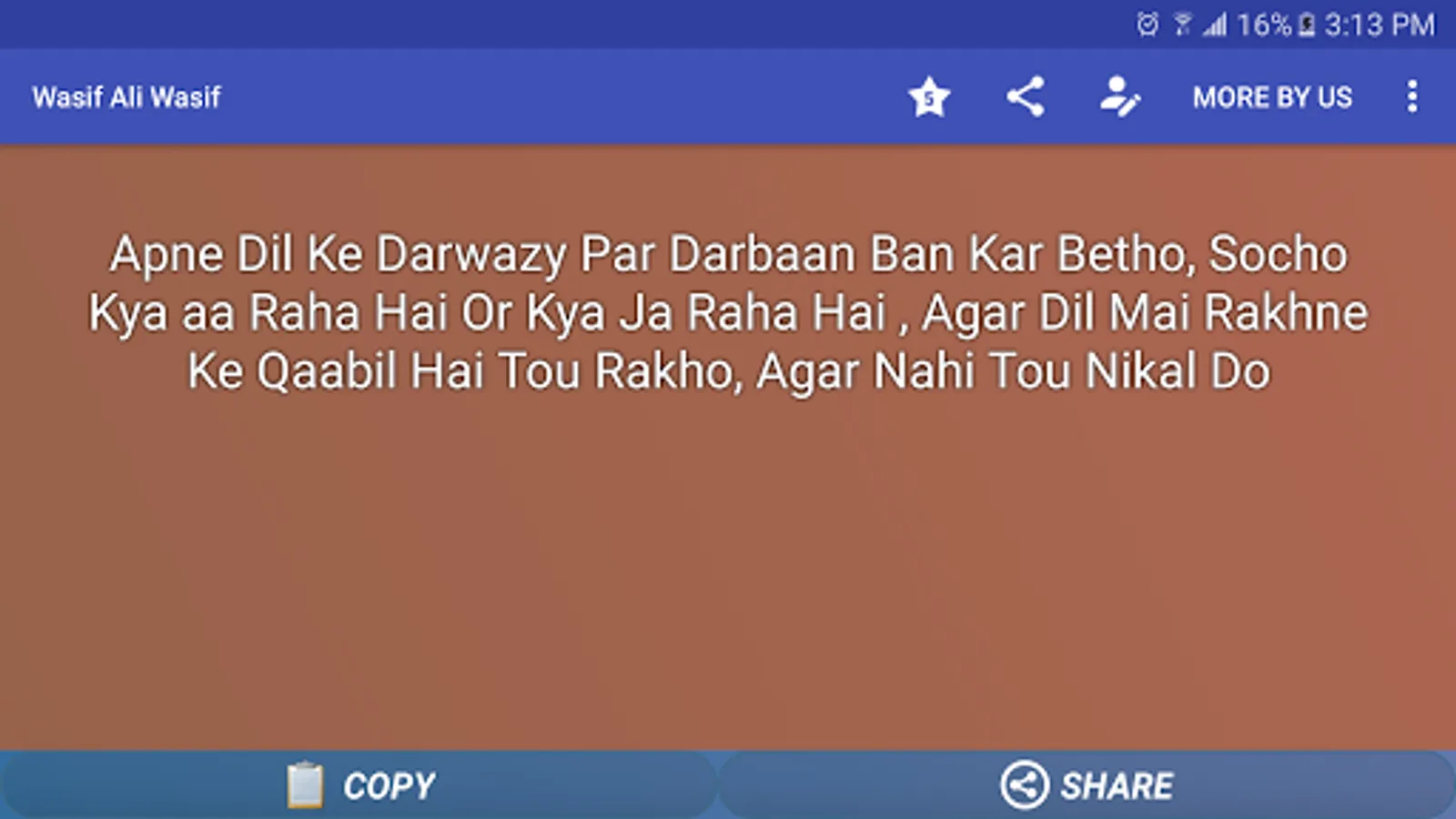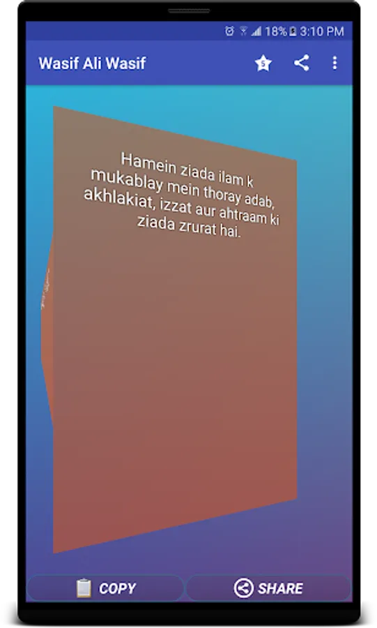This is a best quotes collection of wasif alli wasif sayings . this is an application of sunehri batain and aqwal. This is a huge collection of Dil darya samandar and wasif khayal. You can download and share to love ones. This is a life hanging app who can make you a better live living .