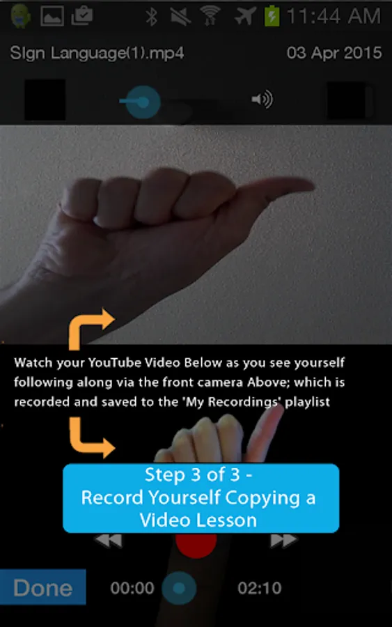 b) While viewing the video lesson offline, you can use VidSit app to record yourself in real-time (in a picture-in-picture / split screen window) interacting / following along with the video, while the video is being played in part of the screen.