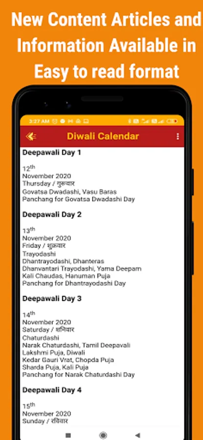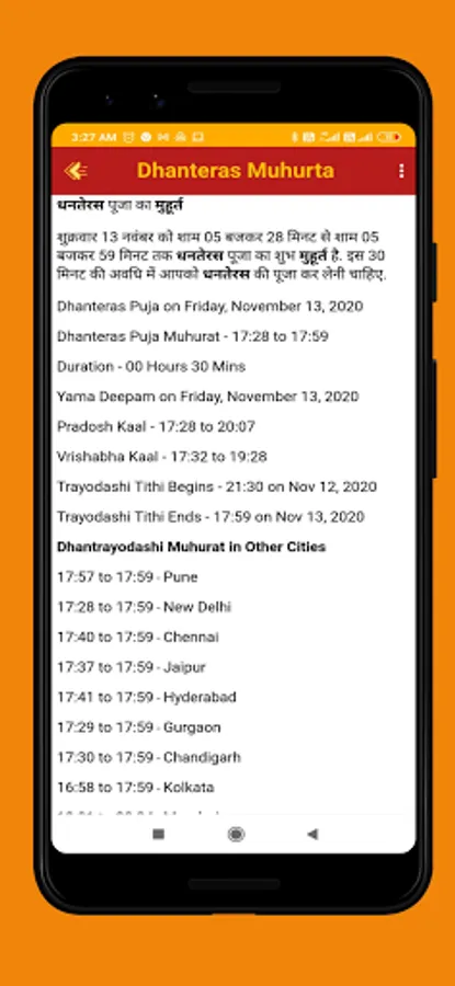Deepavali Puja App provides details of: