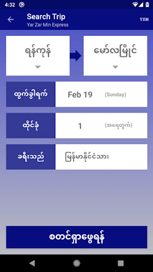 Yar Zar Min Express app lets travel agents purchase express bus tickets online.