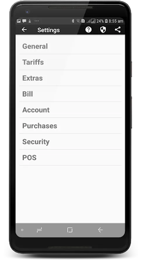 At Settings, you can adjust the currency, color theme, print settings, charging rates according to your area.