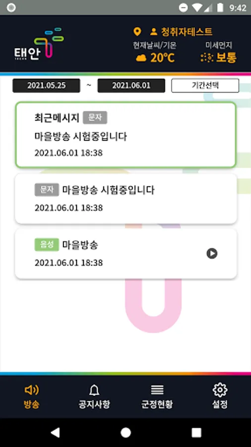 It is a smart village broadcasting app for residents of Taean-gun that can listen to village broadcasting.