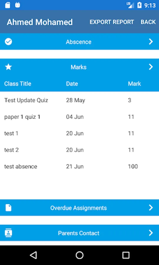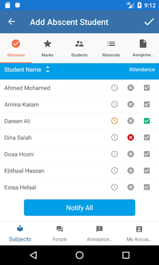 With Madinaty Integrated Language School App, you can reach every student in your class, view summary and export reports.