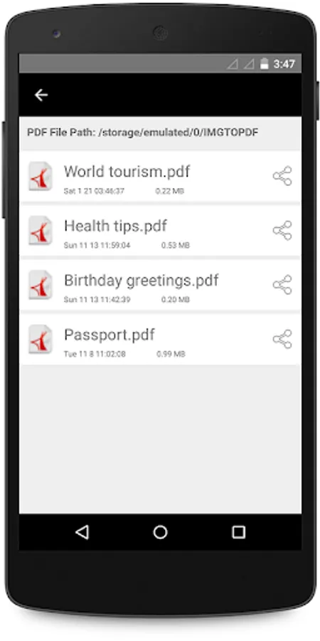 • Create PDF from gallery images or directly take new pictures from camera and convert them to PDF