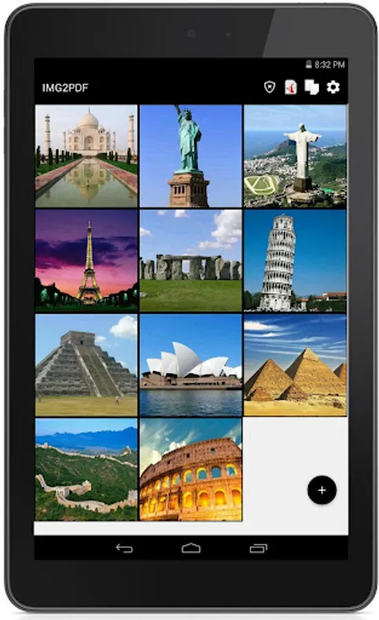 1. Select image/images from gallery with + icon. Camera option is also available to take new pictures, select them and convert to PDF.