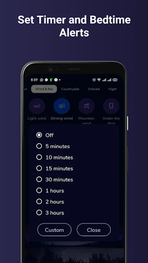 Wind and Fire: Light wind, Strong Wind Sound, Mountain wind, Fireplace sound