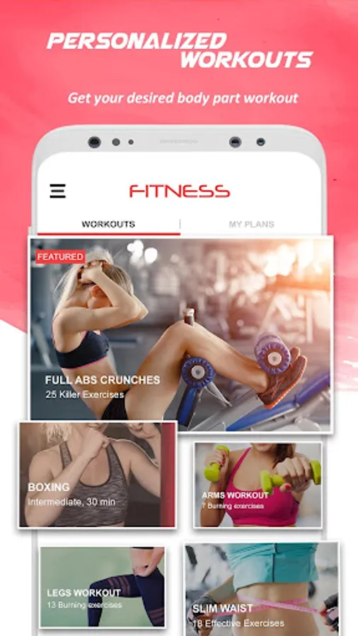 ✔ Choose from bodyweight, time-based, free weight or machine based workouts