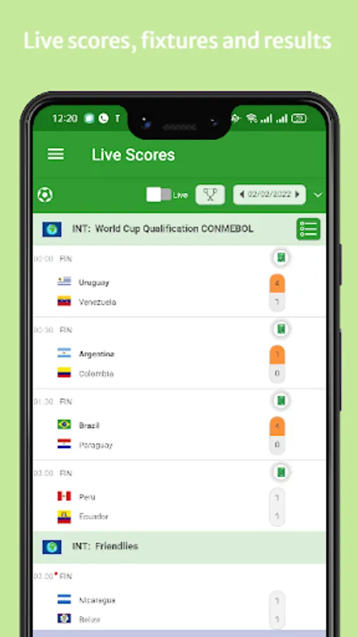 Football Live Scores keeps you up-to-date with the latest scores and live matches highlights.