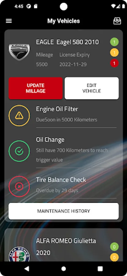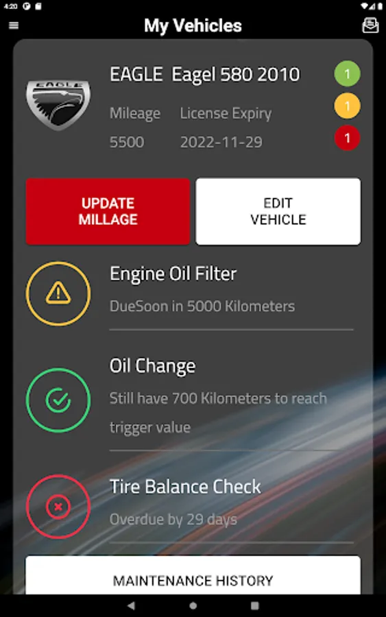 Say goodbye to missed maintenance appointments and hello to hassle-free vehicle upkeep. The TORQ app provides a seamless solution for tracking your vehicle's maintenance schedule. Simply register your vehicle on the app and receive timely notifications for upcoming service requirements. Stay on top of oil changes, tire rotations, inspections, and more, ensuring your vehicle remains in optimal condition.