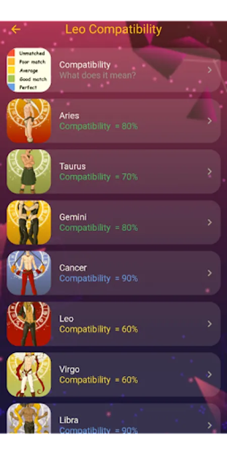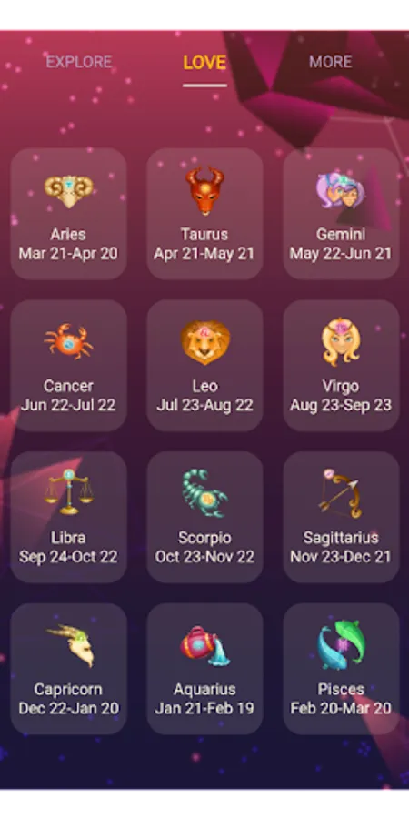 This love horoscope game has free love & relationships horoscope with Love Horoscope match and Compatibility horoscope: match between zodiac signs.
