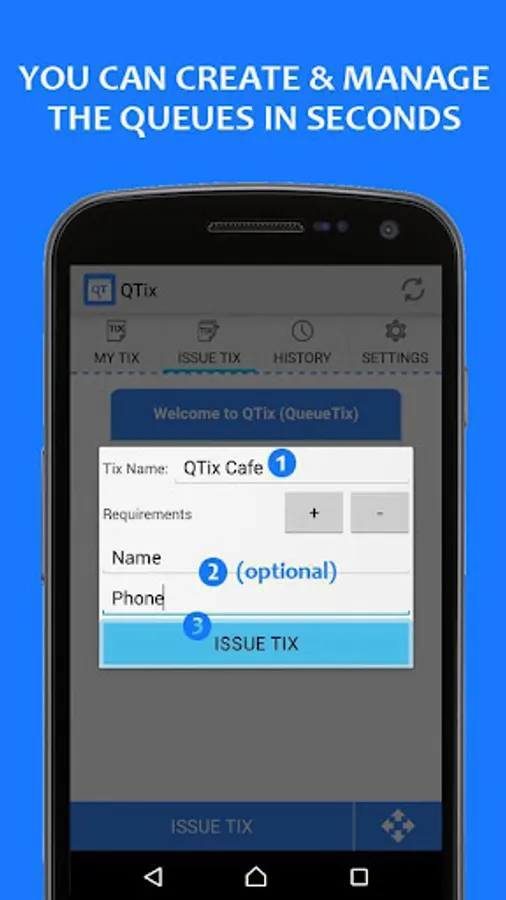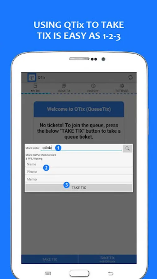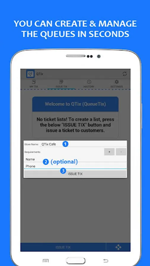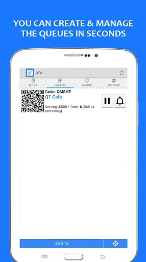 You can also create the queue or waitlist in just a minute and manage the customers in the queue in seconds. All you need to do is download the app and only takes a few taps on your mobile phone or tablet. Feel free to contact us adminqt@queuetix.com to arrange a demo, trial and set-up of QTix app for your business.