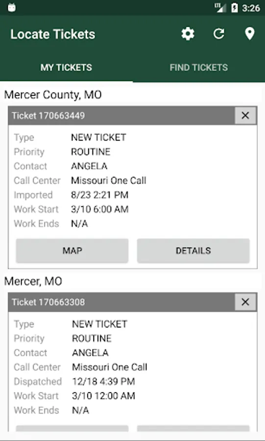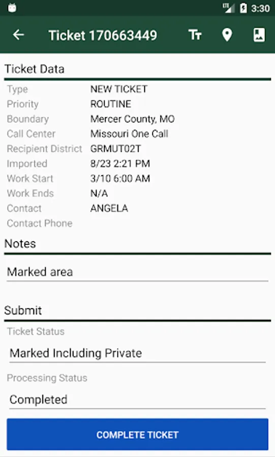 - View locate ticket area on map