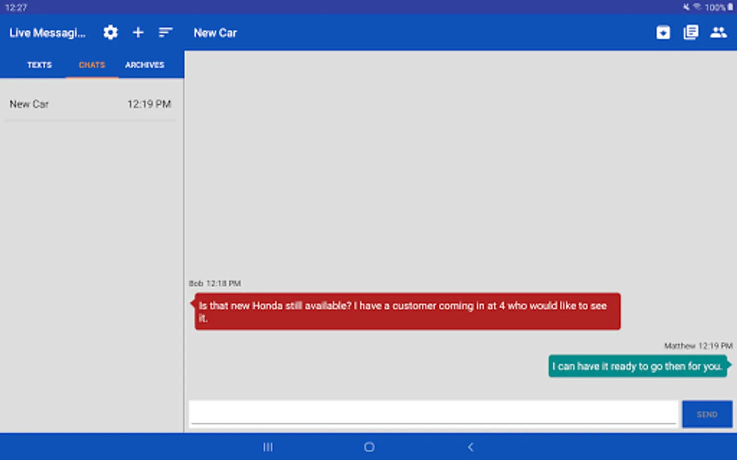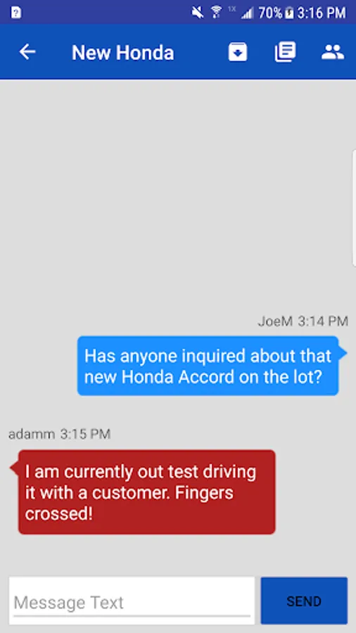 The IS Live Messaging application allows technicians, customer service representatives, or other employees to communicate with their customers through text messages using a shared company phone number. There is also an internal chat system for messaging between employees.