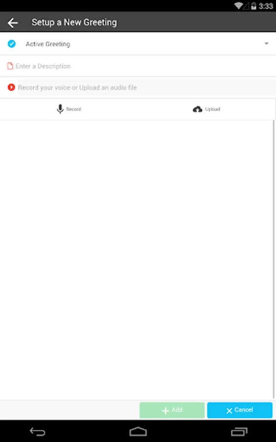 Contact your local telephone service provider for details regarding availability of the service this app provides as well as sign-in information. The sign-in information required includes URL, Username, Password, and Voice Mailbox PIN.