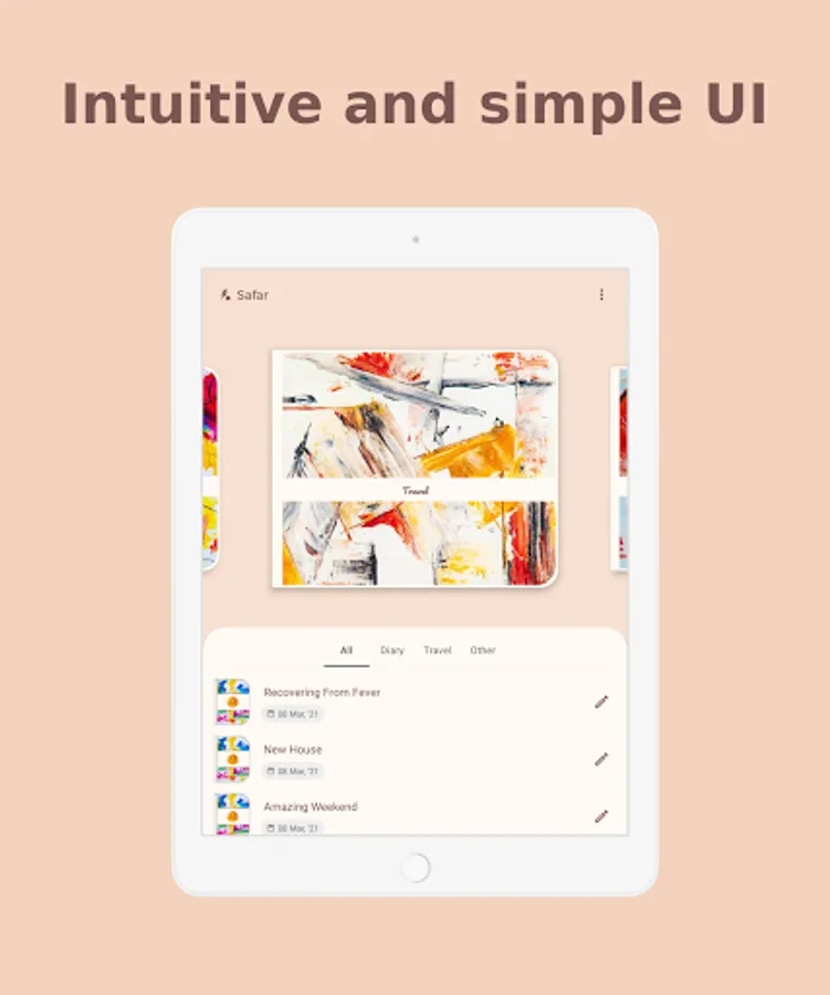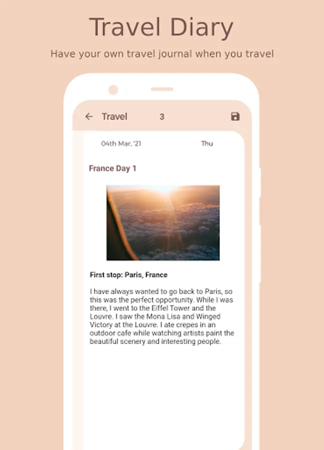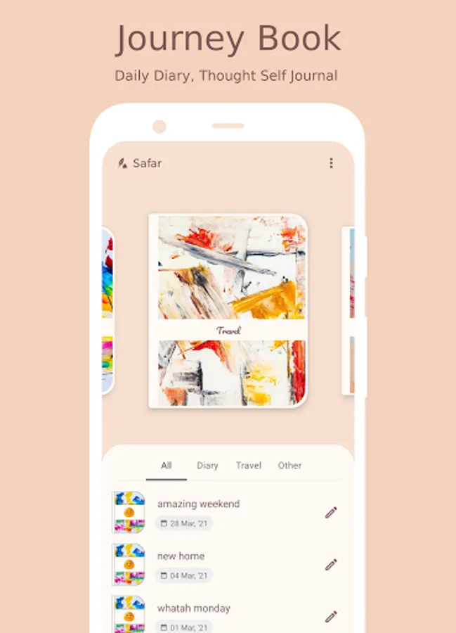 Besides having your personal daily journal, with a simple swipe you can also access and have your own travel journal when you travel. This Is kept separately from your journal notebook.