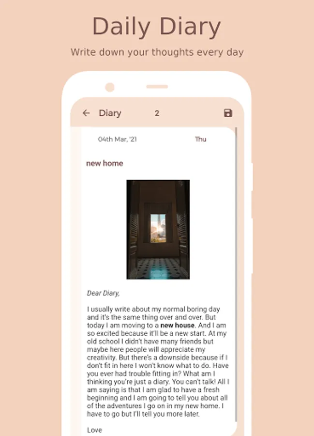 Whether you want a daily diary about your life, or you want log diary and a mind journal to write down your thoughts every day, write it quickly in your daily diary.