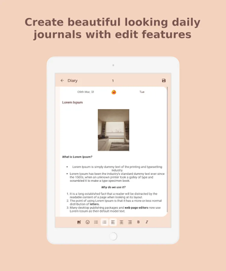 While the UI is intuitive and simple, this doesnโt mean we sacrificed features to create beautiful-looking daily journals. Make use of the following editing features: