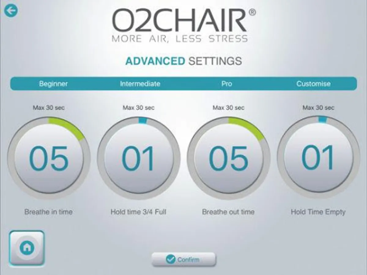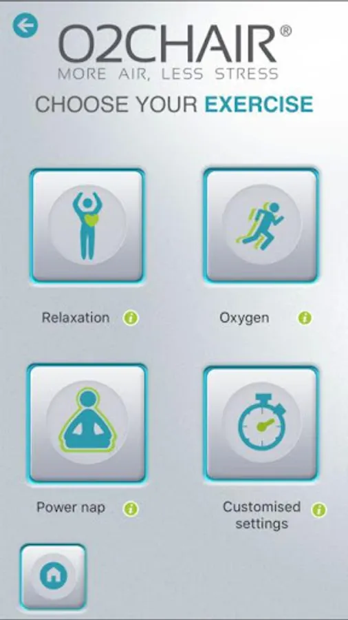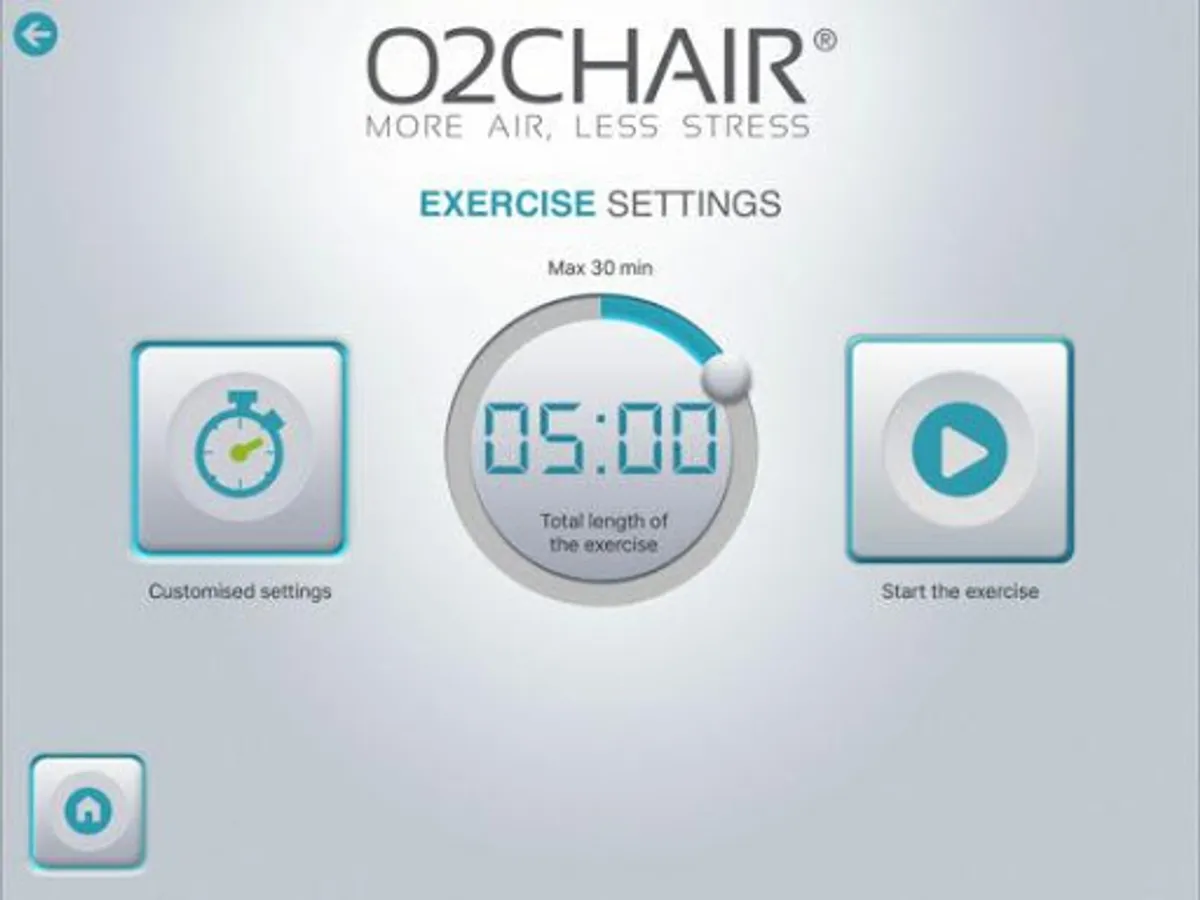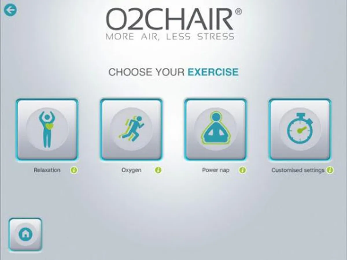 Our unique graphics and the possibility to customize exercises made the O2CHAIR application an unmissable tool for a better health and relaxation.
