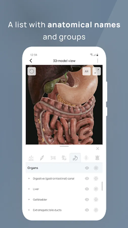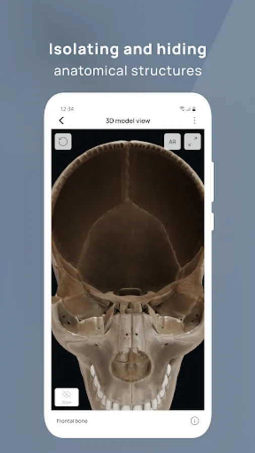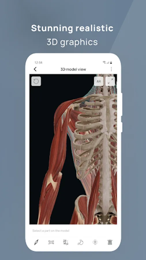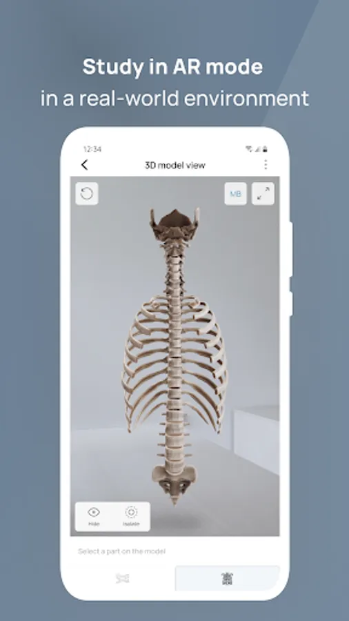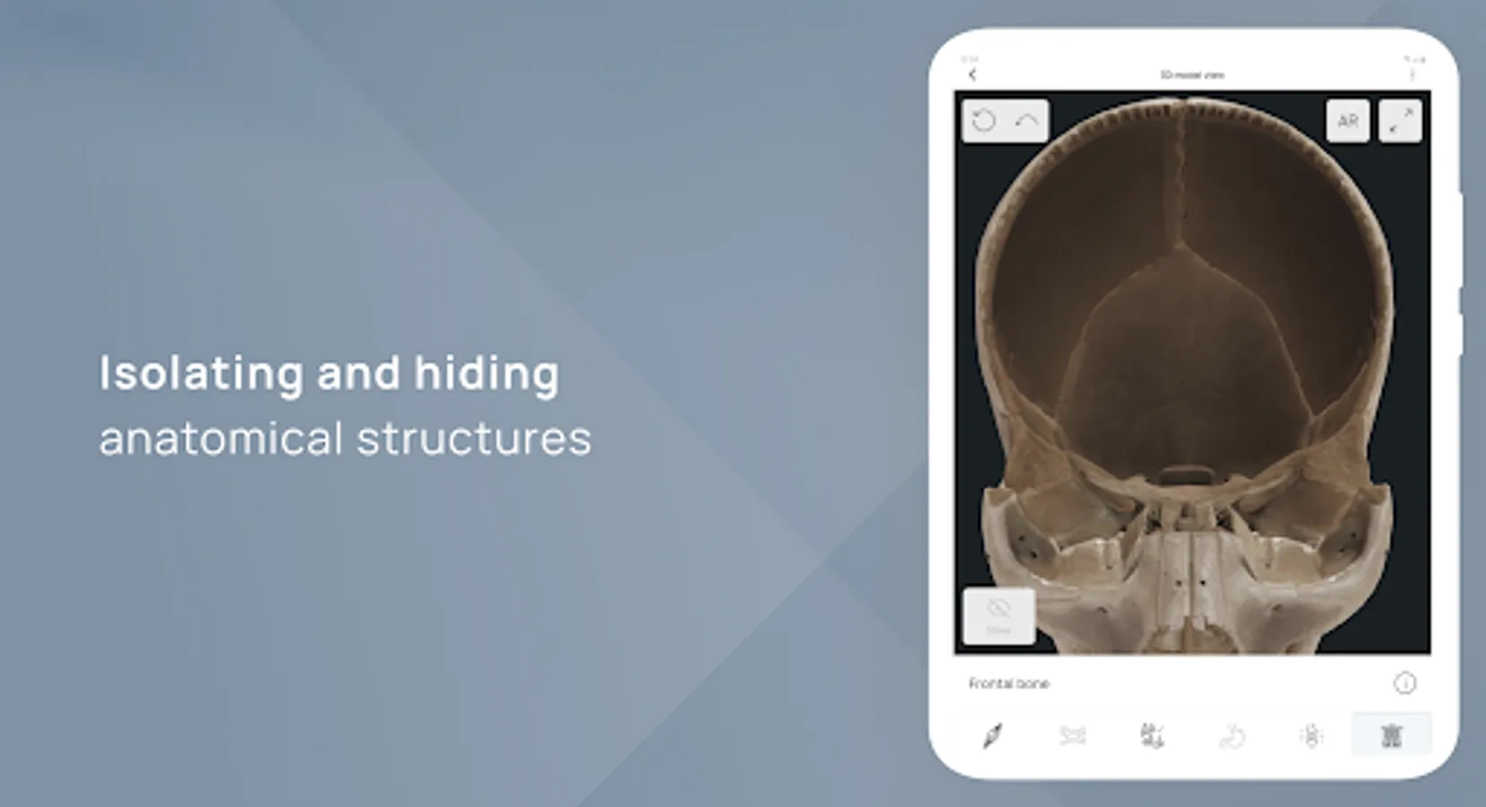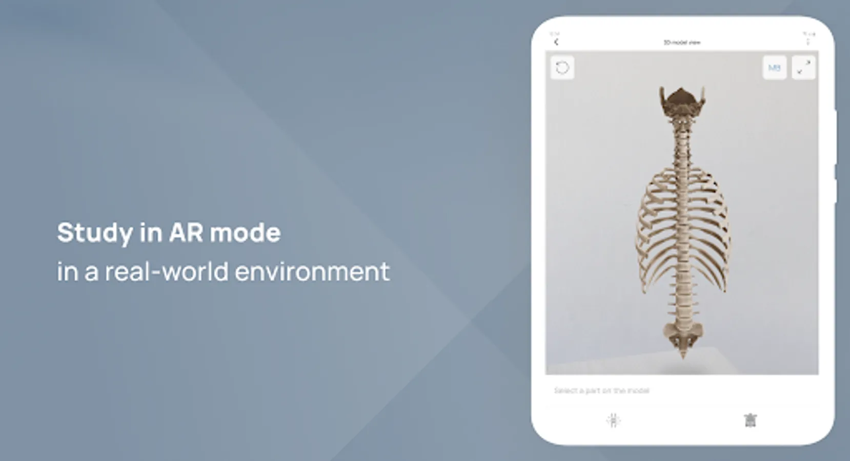 ✓ AR mode to display 3D pathologies in a real-world environment, e.g. on a mannequin