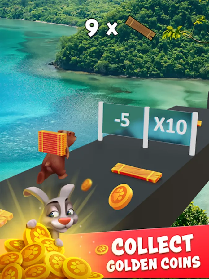 * Earn and collect coins from each successful bridge to spend on gear for your island. Build islands, progress, and discover the animal world.