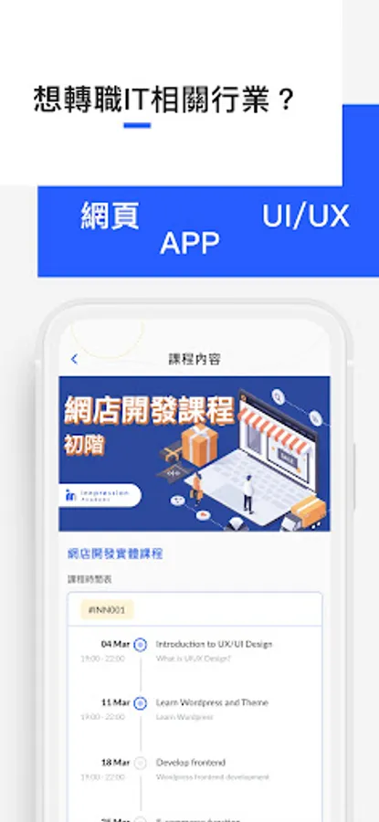 "Innpression Academy is a brand of Innpression Limited. It has more than 7 years of web development experience and has built several successful web and mobile applications for the government and various organizations. We have a deep understanding of the market needs and technologies of the Hong Kong web and mobile development industry Trend, can provide high-quality web design and development, APP design and development, UI and UX design and other online media-related courses according to market needs.