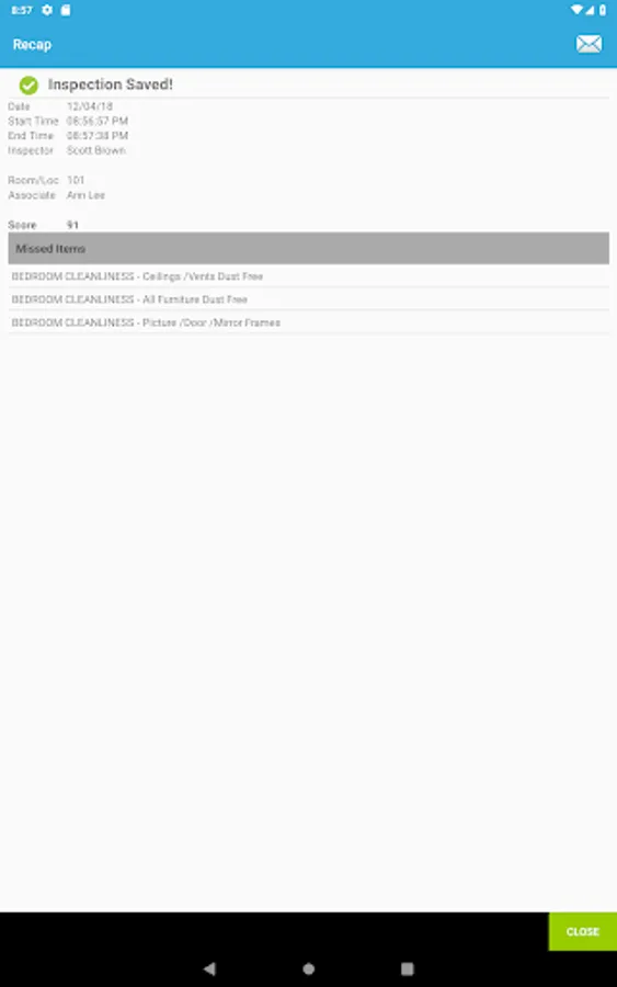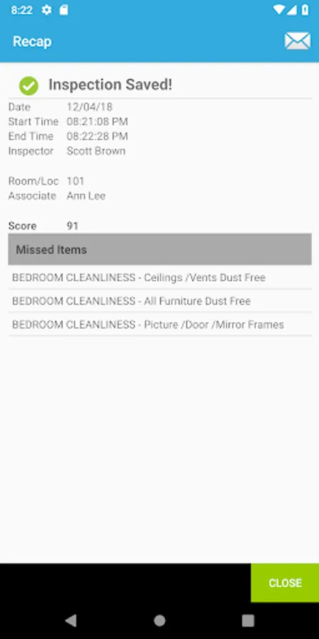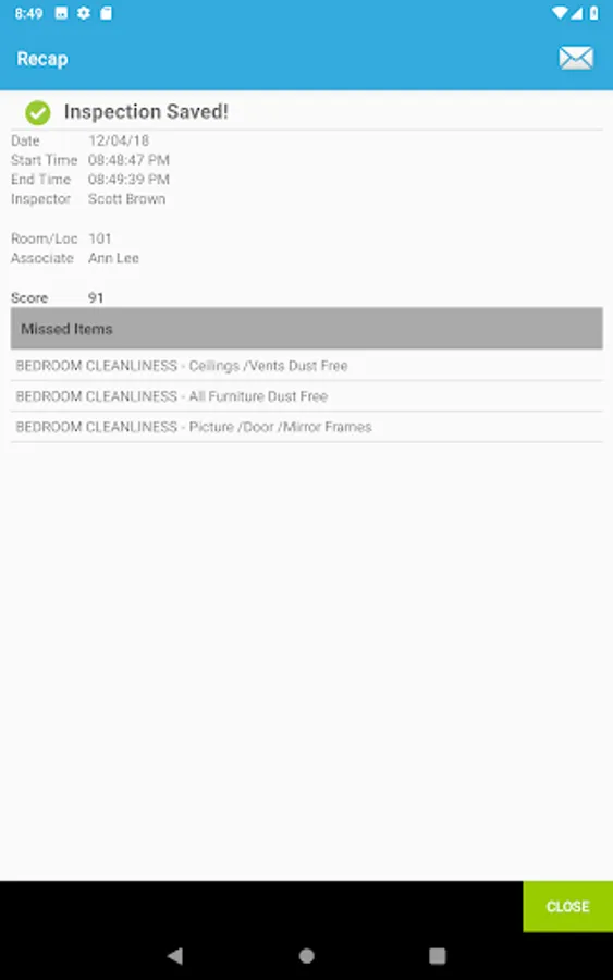 • Inspections Made Easy – Just tap through the checklist, add photos and comments if needed, click “save” and you’re done. Scores are calculated instantly and reports are updated in real-time.